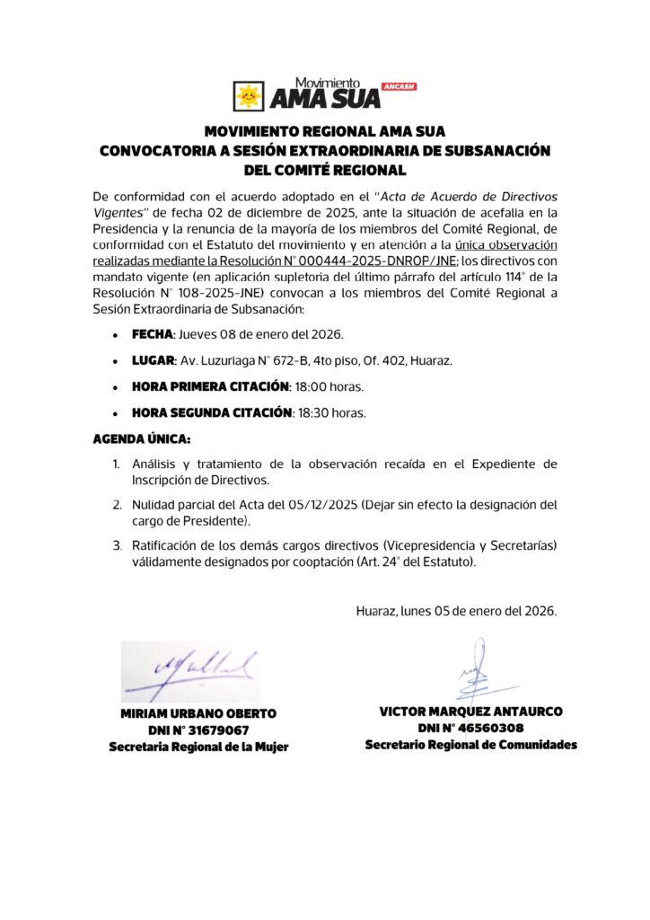 CONVOCATORIA A SESIÓN EXTRAORDINARIA DE SUBSANACIÓN DEL COMITÉ REGIONAL By Ama Sua | enero 5, 2026 | Documentos | No Comments Leave a comment Cancel reply Guarda mi nombre, correo electrónico y web en este navegador para la próxima vez que comente.